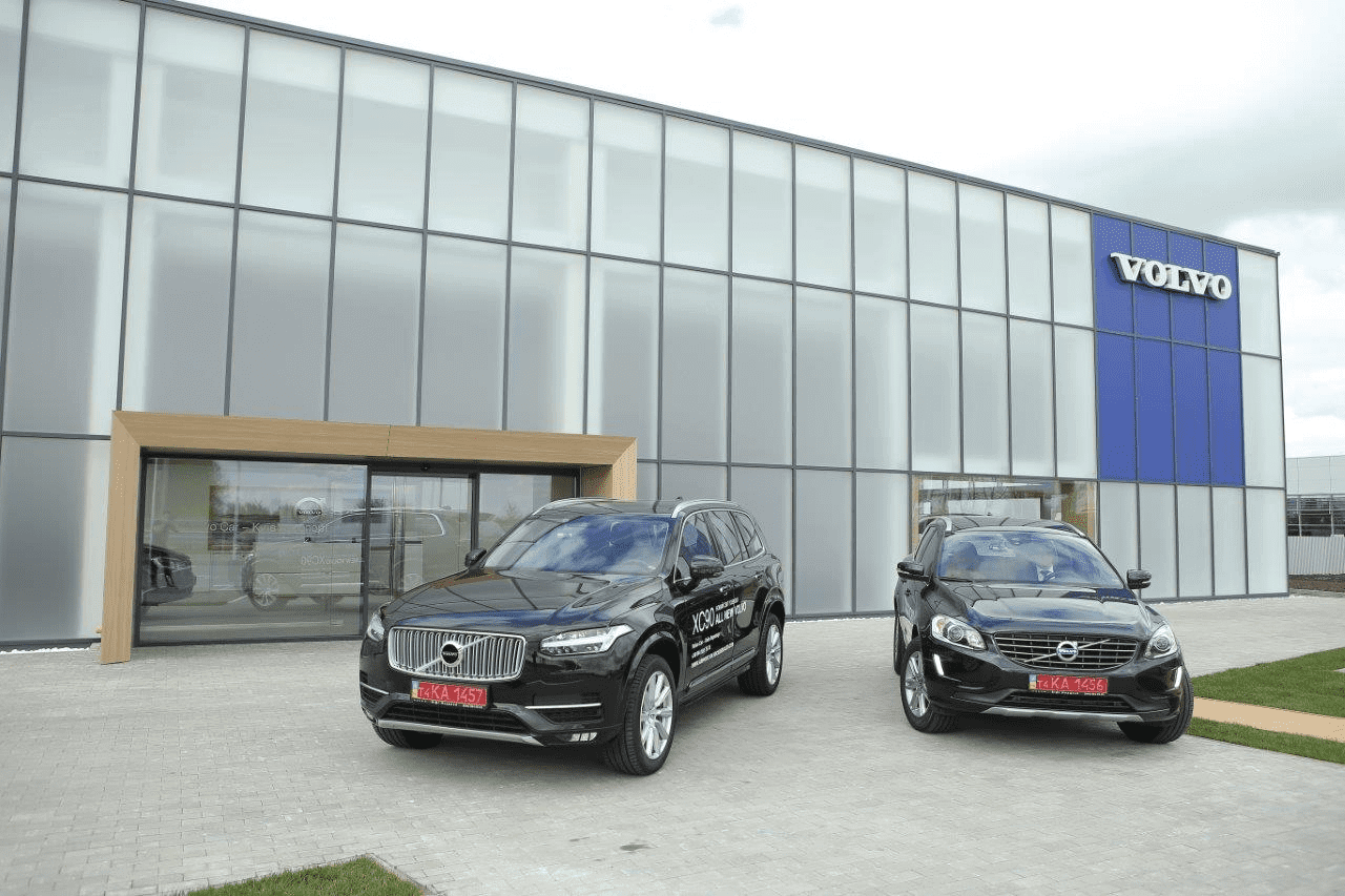 Автосалон Volvo знаходиться неподалік магістралі, що з’єднує дві частини Києва. Будівля на два поверхи загальною площею близько 8500 кв. м включає виставкові зали, сервіси з ремонту, мийку, кабінети для обговорення умов купівлі та заповнення документації, зону відпочинку для покупців з дітьми.